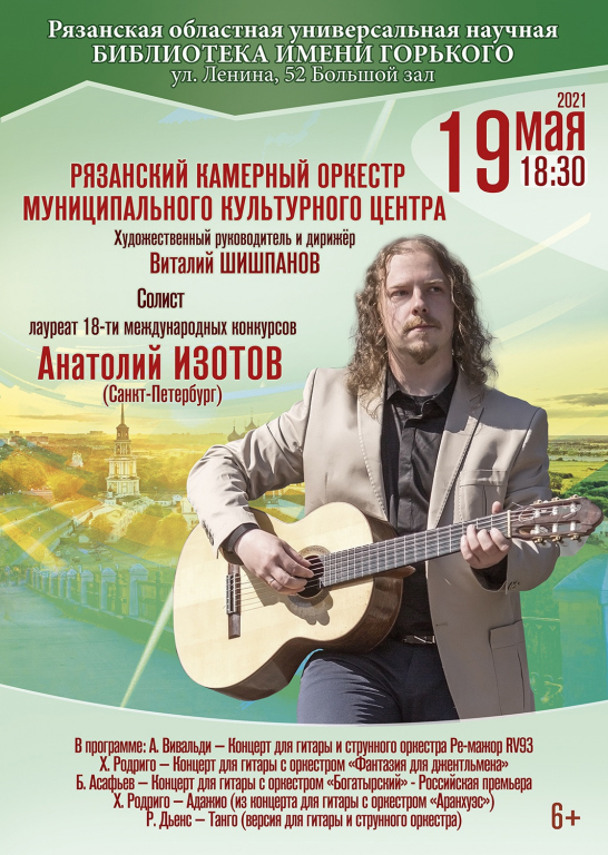 Один из лучших классических гитаристов России выступит в Рязани в сопровождении камерного оркестра.